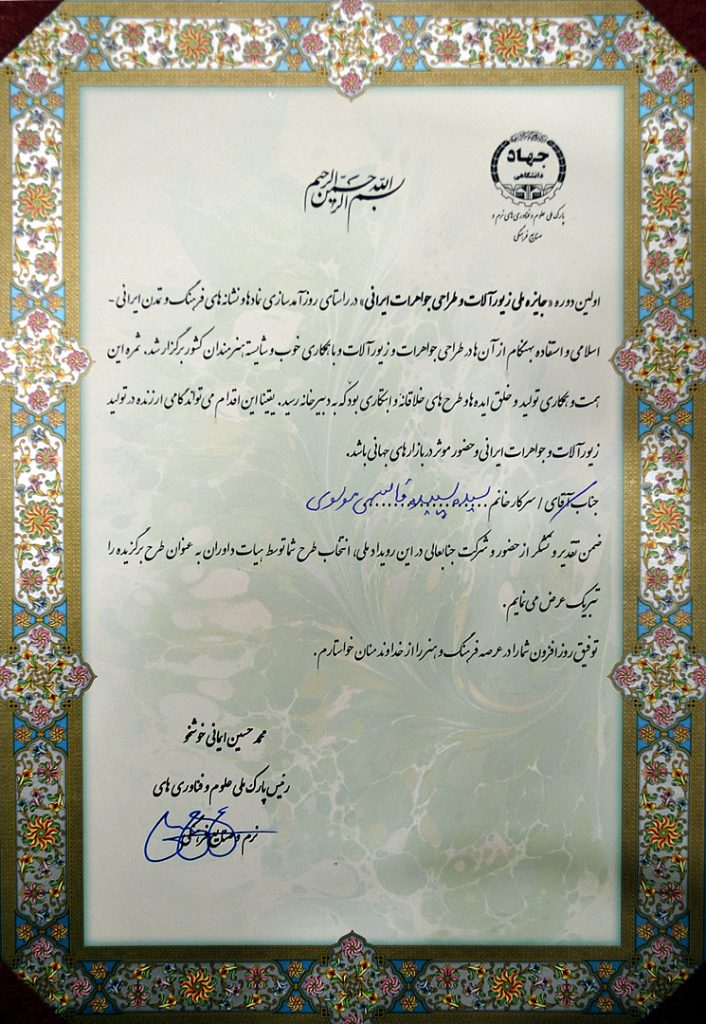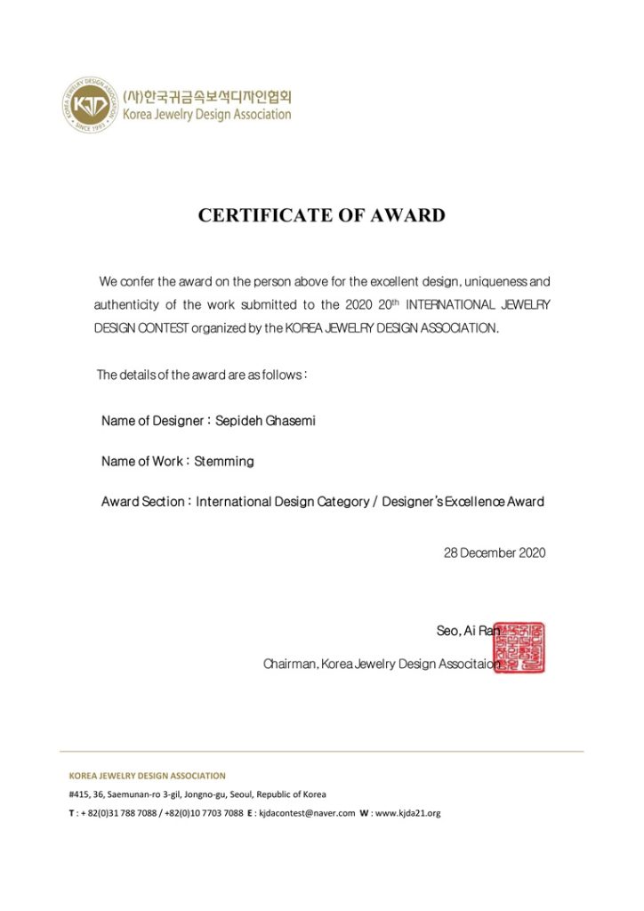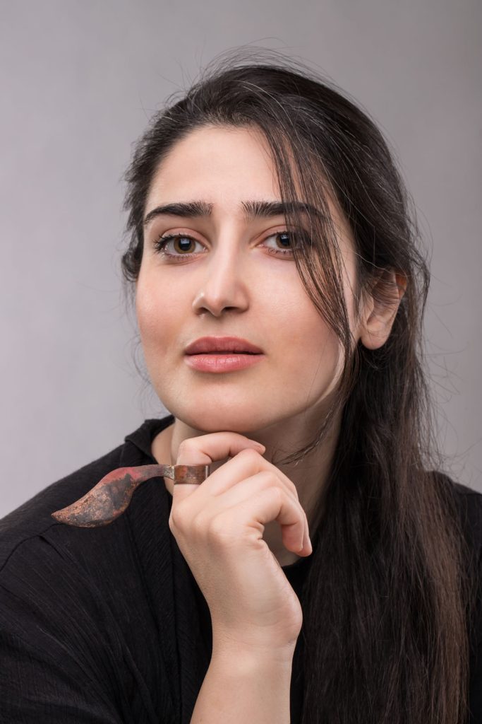 After studying sculpture, she learns to make jewelry traditionally. The artist’s recent experiences are more in the field of contemporary jewelry. These experiences made the body, which plays a significant role in the presentation of jewelry, to the artist’s attention, and the new meanings and concepts that the body has found for her in creating her works. Also, the artist’s interest in anthropology, the cultural and native customs of the region’s people, and the role of objects, especially primitive human creations, whether in terms of application or content, become the foundation of the artist’s works. Sepideh Ghasemi has participated in several domestic and foreign exhibitions.