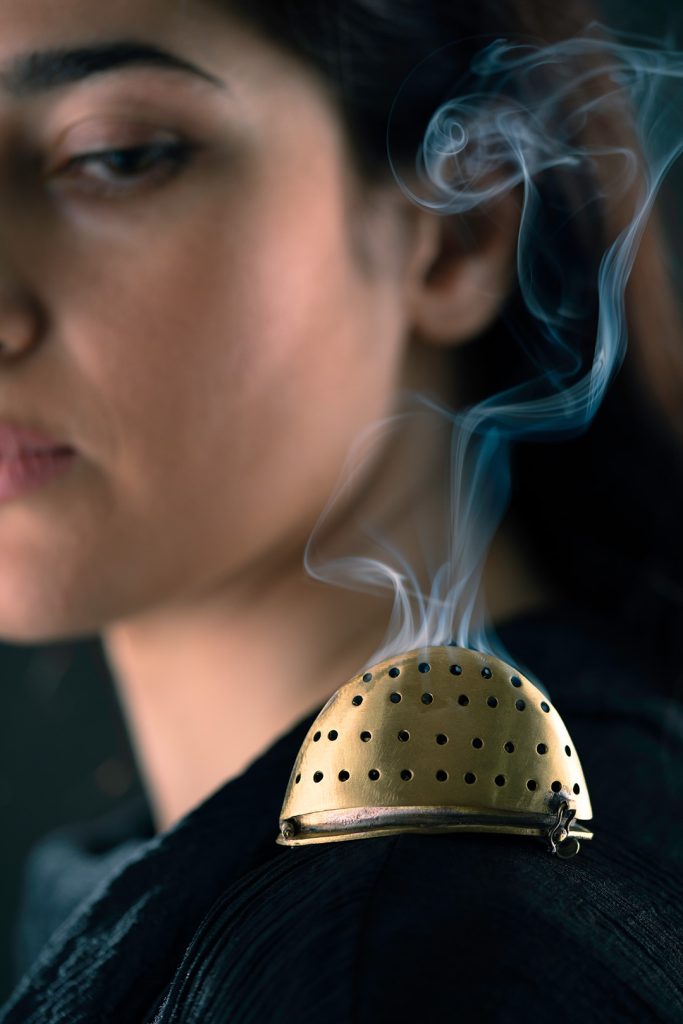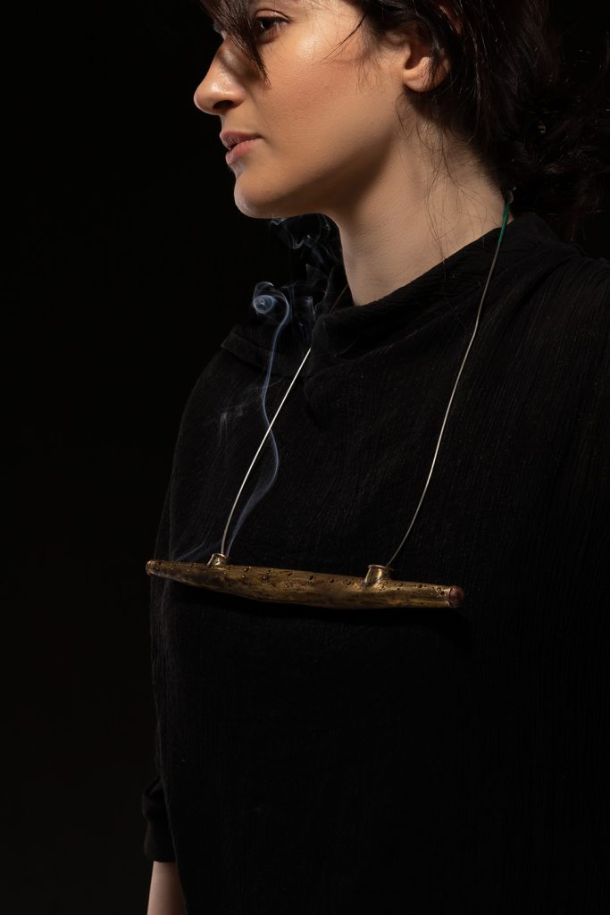 The body is a substance that creates identity and requires a medium. It is a space that exposes itself to the reading and evaluation of others and is rebuilt based on the same readings. Also, the body acts like a medium; it provides the possibility of creating a dialogue with the outside world and recreates what it has undergone internally due to time, place, gender, etc., and makes its perception of the world. Above contemplating this critical fact that the body is a tool to perceive the world and a medium to represent it, the flexibility of the body in the maze of social, historical, and medical hazards and other perilous parameters made me cherish this powerful tool of human identity (body) and admire its status and presence in this perilous and mutable arena. In the popular culture of the East, one uses a caustic substance such as incense or wild rue seeds to shield something/someone precious for them from evil. I, too, utilized this concept in this collection and made objects to protect the body.